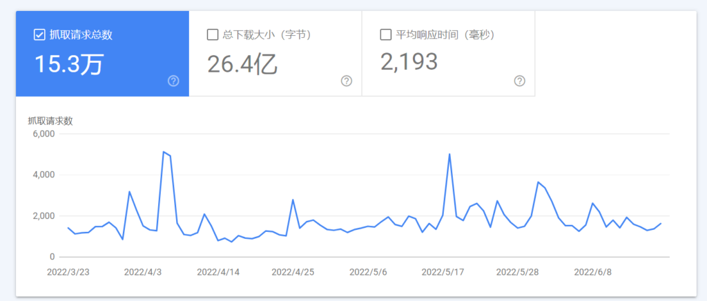 登录到您的Google Search Console帐户并导航到“设置”,然后抓取>抓取统计信息>打开报告。在这里,您可以查看过去90天时间范围内的Googlebot活动。您将看到三个图表——每天抓取的页面、每天下载的千字节以及下载页面所花费的时间(以毫秒为单位)。这些图表将让您全面了解Googlebot在您的网站上所做的事情。