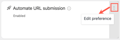 这是插件中最有用的部分,无需手动托管API密钥文件和URL提交过程。默认情况下,激活插件后会启用自动URL提交。但是,您可以通过单击“Automate URL submission”中显示的三个垂直点图标来检查和管理该选项。之后单击出现的“Edit preference”按钮。