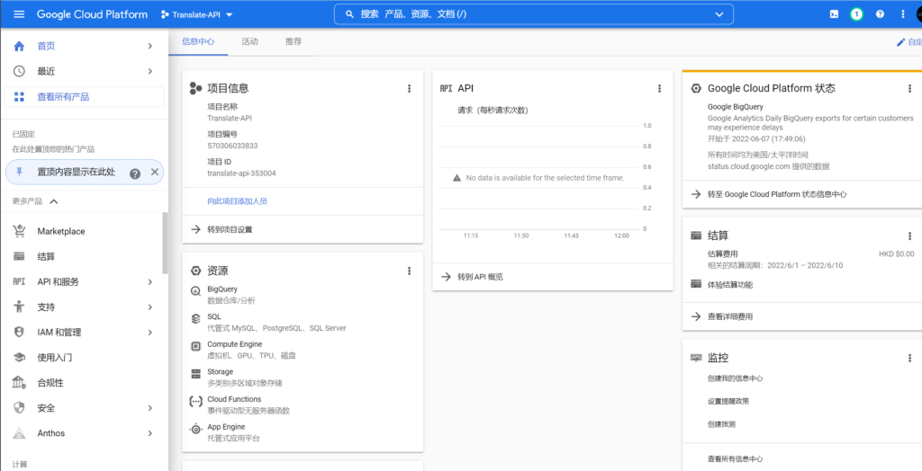 2.2 申请开通谷歌翻译API