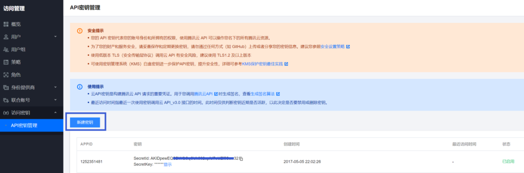 腾讯云API密钥管理