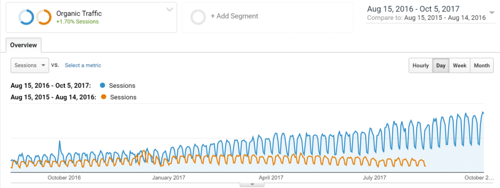 事实上,我们能够在13个月内使用内容营销和SEO将网站的自然流量(无广告或社交媒体)增长517% 。