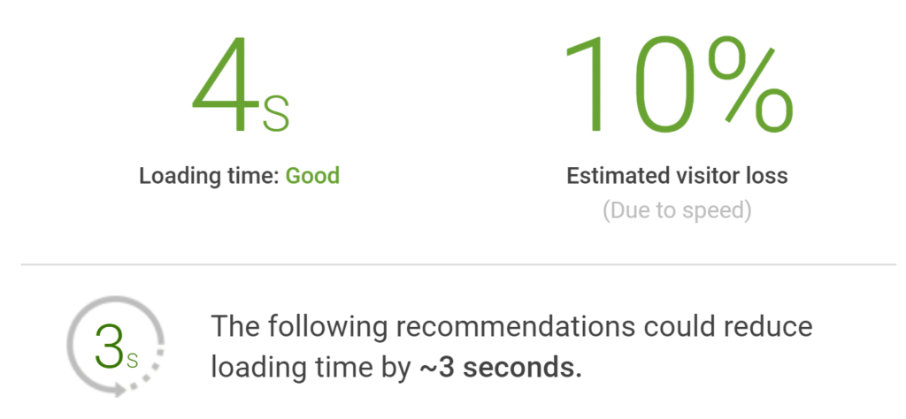 使用Google的测试我的网站工具,您可以扫描您当前的移动网站,并直接了解需要采取哪些步骤来提高您的网站速度。通过该工具运行您的网站将生成您的报告的免费版本,它将直接发送到您的收件箱。该报告涵盖了您当前的网站速度,以您的竞争对手的速度为基准。它还将向您显示您当前的潜在访客损失: