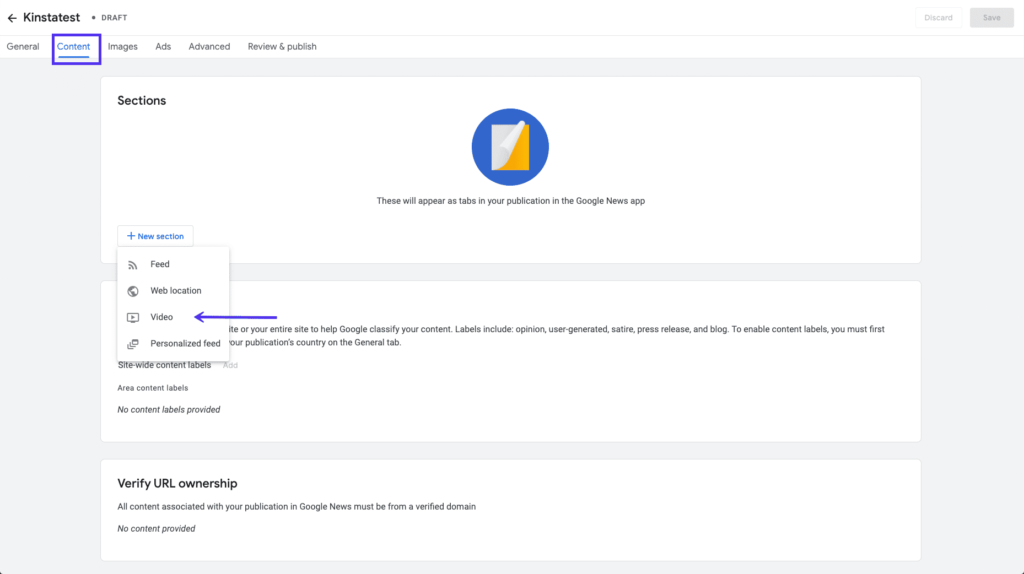要将您的视频内容提交到Google新闻,您需要登录发布商中心,点击顶部菜单栏中的Content标签。