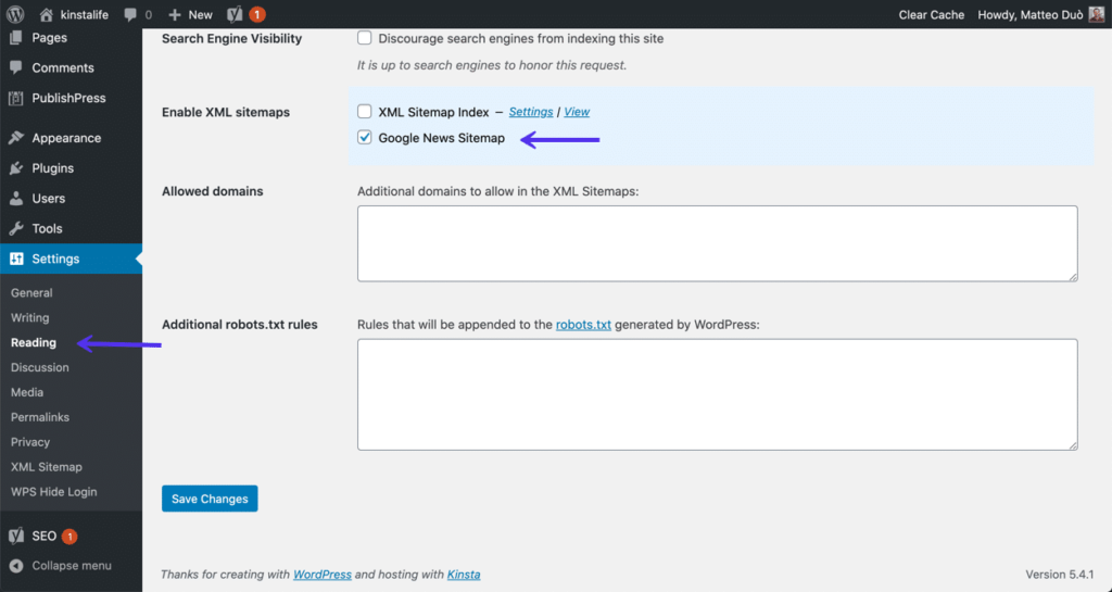 安装后,您必须在设置中启用Google新闻站点地图功能: