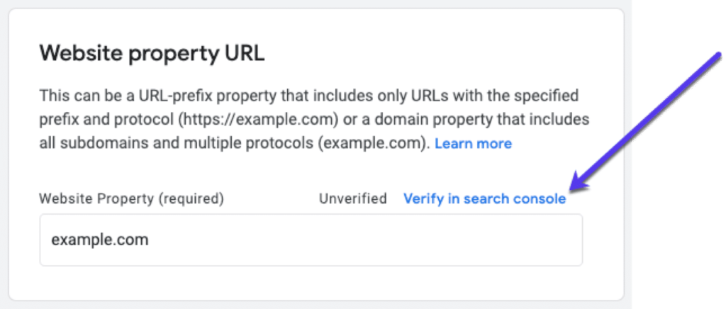 只需在网站属性URL框旁边的Search Console中单击验证: