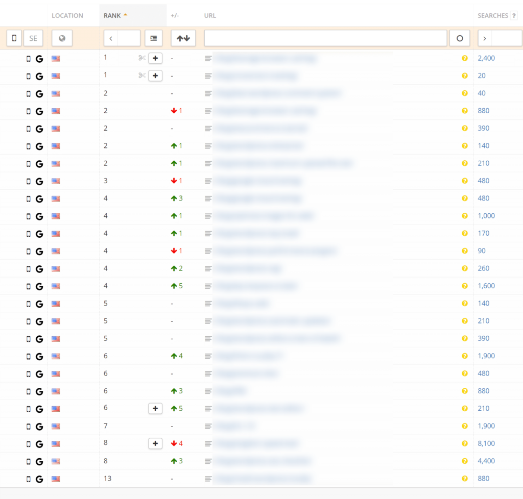 我们还建议使用关键字排名跟踪工具。例如,使用Accuranker监控我们的桌面和移动关键字 。它使我们能够轻松查看每个关键字的历史记录,并且移动设备上的 /amp/ URL 正在重新索引到原始URL。这是验证一切顺利的一种快速简便的方法。
