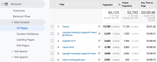 虽然MonsterInsights可以非常轻松地找到您网站上最重要的页面并查看WordPress仪表盘中的数据,但您也可以使用Google Analytics查看您的热门页面。