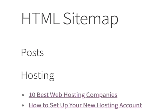 另一方面,HTML站点地图适用于您的实际网站访问者。这是一个简单的页面,以有组织的方式列出您的所有文章和页面。