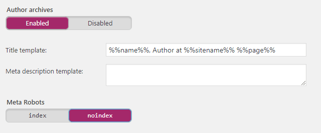 如果您的博客有多位作者,并且您决定启用作者档案,请确保将Meta Robots设置设置为noindex,就像使用类别和标签一样: