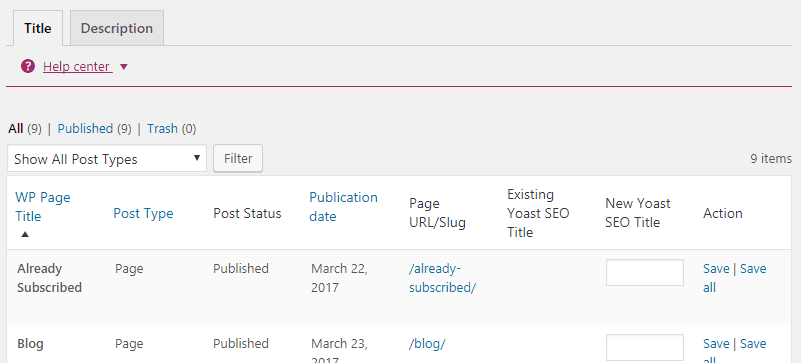 此工具可帮助您一次批量编辑多个文章和页面的页面标题和描述。您可以使用此工具,而不是逐个浏览所有文章。