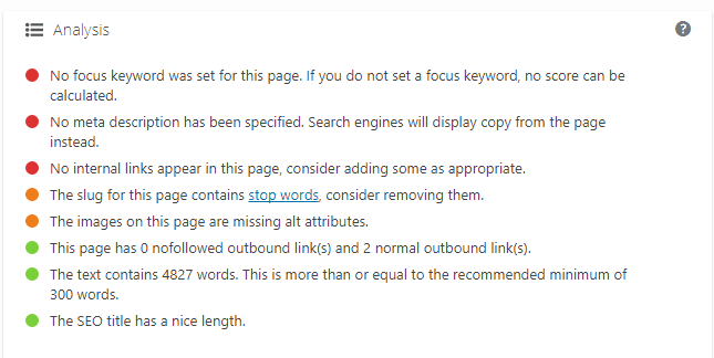 Yoast对每一项提出简单的建议,以帮助您改善您的OnPage SEO: