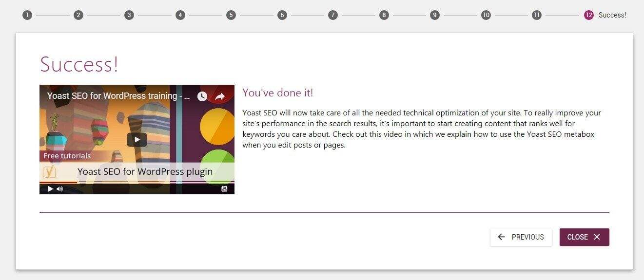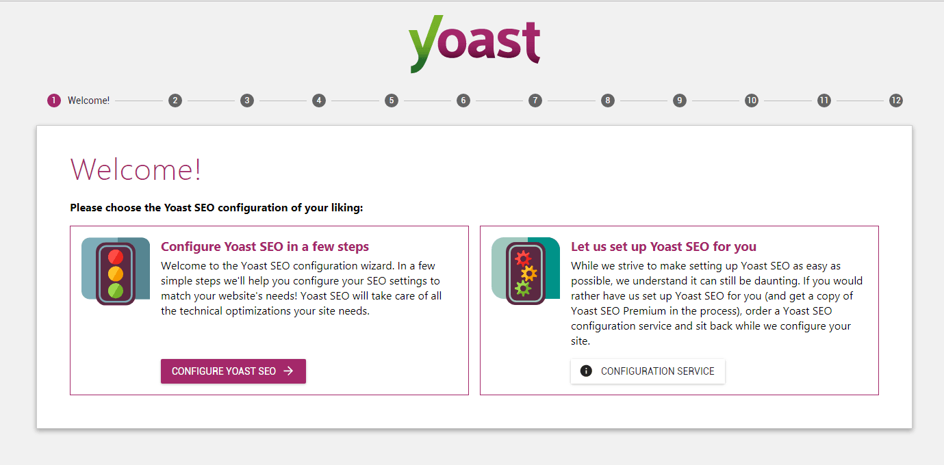 Yoast配置向导是配置插件的最简单方法。使用配置向导时,系统会询问一组自动为您配置插件的简单问题。