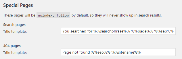 最后,建议您将最后两个选项“搜索页面”和“404页面标题模板”保留为默认设置: