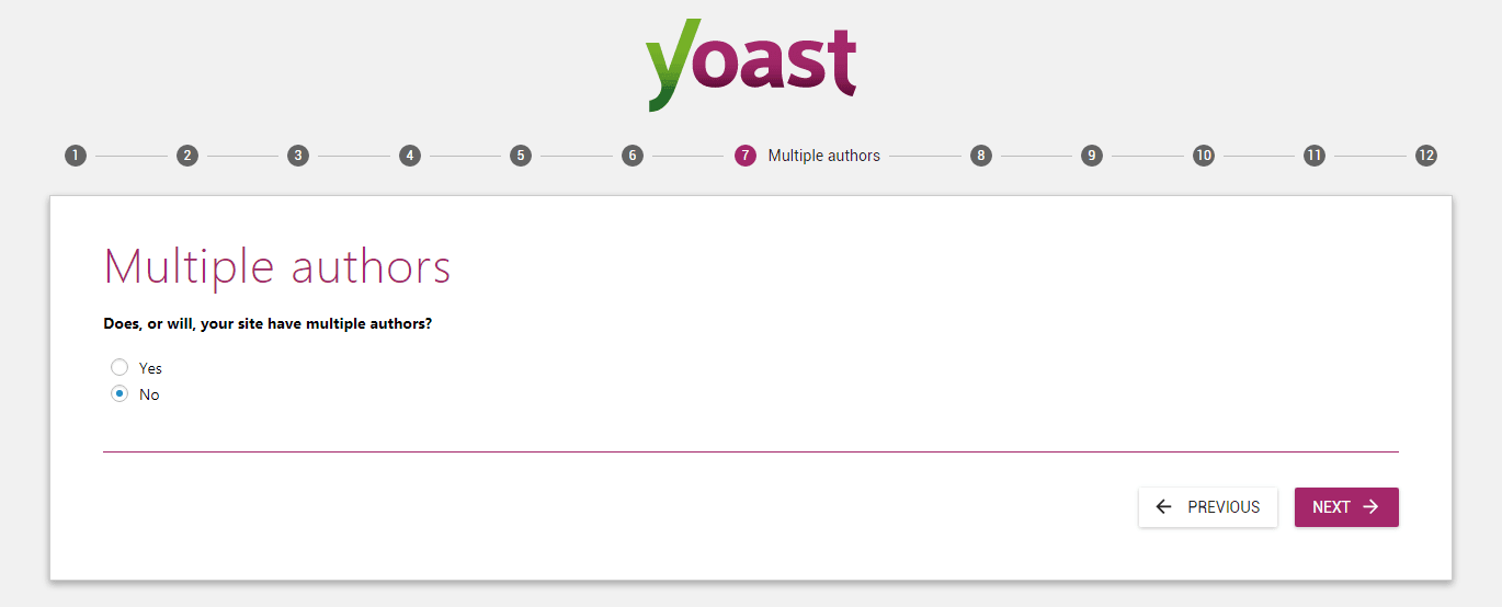 在此步骤中,仅当您的站点有多个作者时才选择“Yes”。如果是个人网站,请选择No: