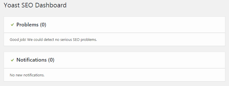 在Yoast SEO插件的仪表盘页面上,您将看到两个框: