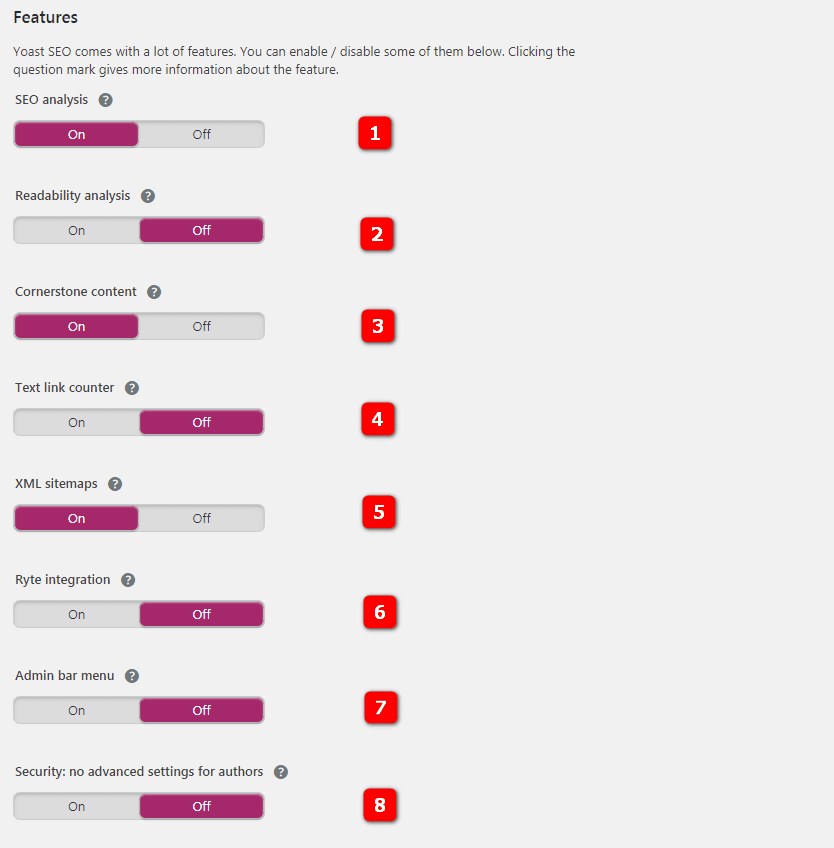 - Security: no advanced settings for authors-安全权限控制: Yoast SEO元框的高级部分允许用户从搜索结果中删除文章或更改规范。这些功能可能不需要对任何作者公开。因此,默认情况下,只有编辑者和管理员才能执行此操作。设置为“关”允许所有用户更改这些设置。