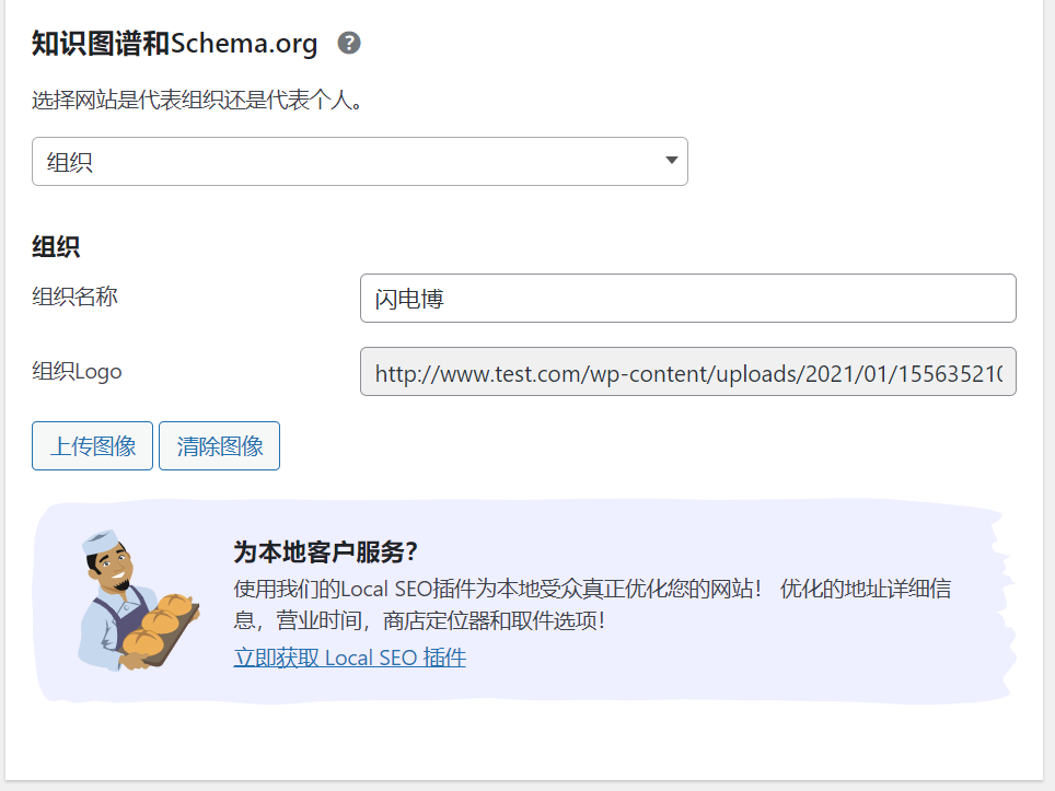此数据仅在站点中显示为元数据,旨在出现在Google的知识图中,根据网站实际属性,可选择为组织或个人。