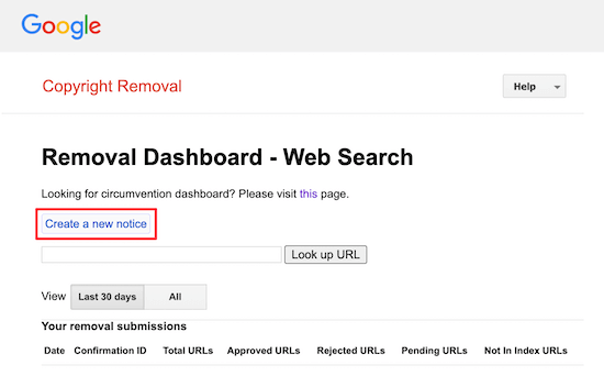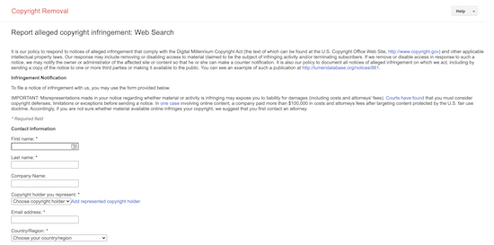 只需点击“Create a new notice”,然后输入所有相关信息,包括您的联系信息,被抄袭的文章以及被抄袭材料的位置。