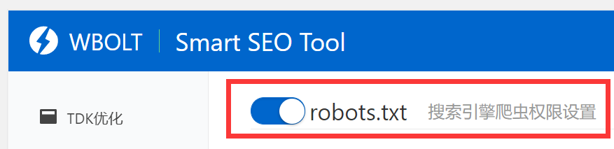 首先你需要启用“Robots.txt”,切换为蓝色来打开编辑选项。