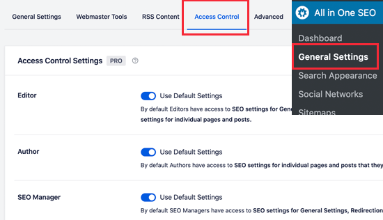 对于多成员管理的网站来说,可能在创建内容,营销或SEO等工作都会有非常明确的细分。All in One SEO支持功能访问权限设置。