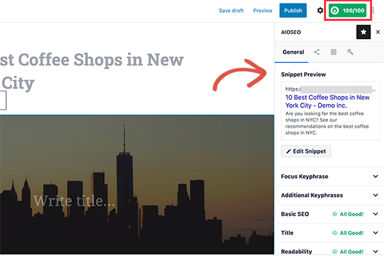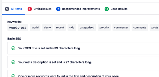 All in One SEO将评估每个博客文章和页面的TruSEO得分,并提供了一些提高得分并优化它们以提高搜索性能的实用技巧。