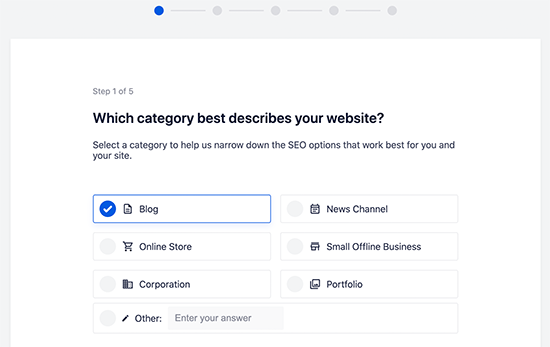 在下一个界面上,将提示您选择网站类别或类型。例如,如果网站主要是博客,新闻网站,在线商店,小型企业等。