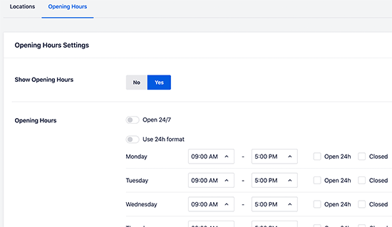 填写表格后,您可以切换到Opening hours页面并输入营业时间。