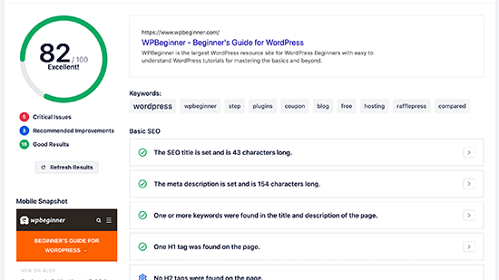解决问题后,您可以单击“Referesh Results”按钮来重新生成SEO Analysis分数。