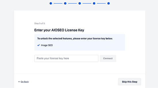 最后,如果是使用插件PRO版本,则将要求您输入许可证密钥。您可以在All in One SEO网站上的帐户下找到此信息。