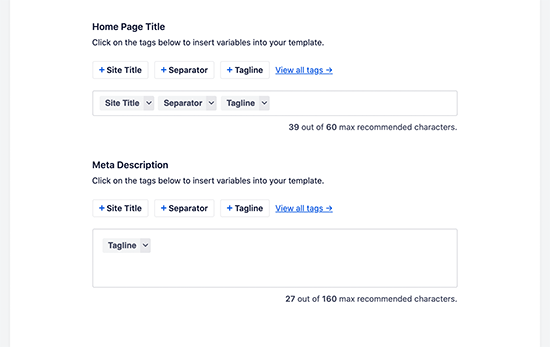 默认情况下,插件将使用智能标签来显示您的网站标题,分隔符和网站标语。