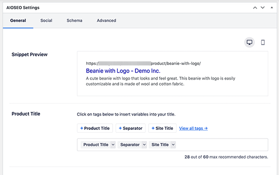 只需在WooCommerce中编辑任何产品,然后向下滚动到产品编辑器下方的AIOSEO设置框即可。