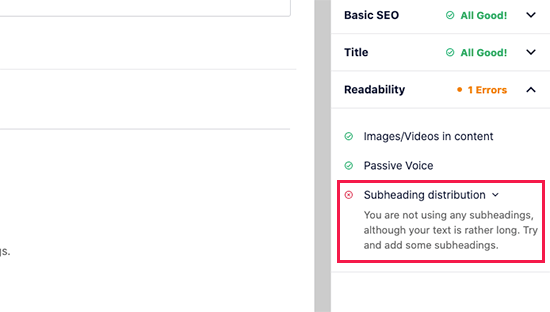 您可以展开不同的部分以查看分析和建议。AIOSEO将提供每个需要注意的建议详细信息,并给出解决方案。