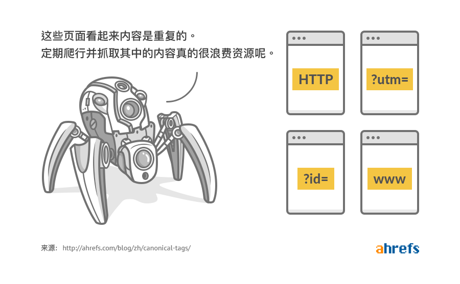 再说过多的重复内容也会影响你的”抓取配额”。这意味着Google最终可能会放弃浪费时间,抓取同一页面的多个版本,而不是发掘出你网站上的其他重要内容。