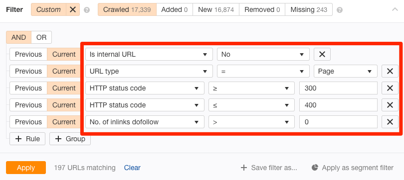 你可以使用 Ahrefs提供的网站诊断来执行一次网站爬行,确保没有这些问题。前往内部页面报告查找以下问题: