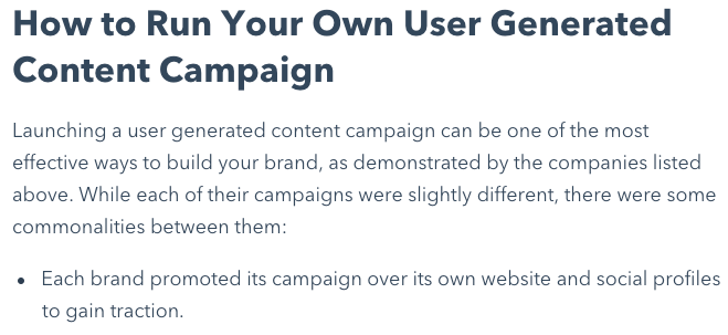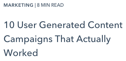 例如,如果我们要对上述 Hubspot 的两篇文章采取行动,我们可能会保留其中一篇文章的标题,即:“如何开展‘用户生成内容’活动”(How to Run Your Own User Generated Content Campaign)。