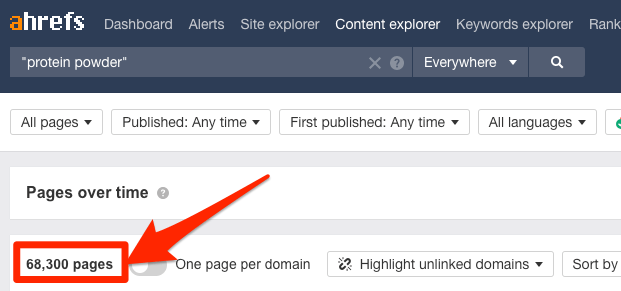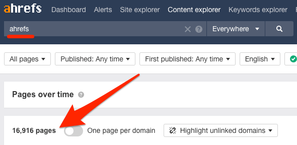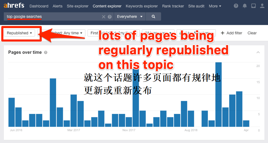 不过让我们把事情变得简单点,使用Ahrefs的内容分析。