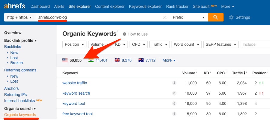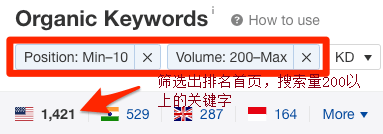 要做这个,可以在Ahrefs的网站分析里面使用自然搜索关键词报告。