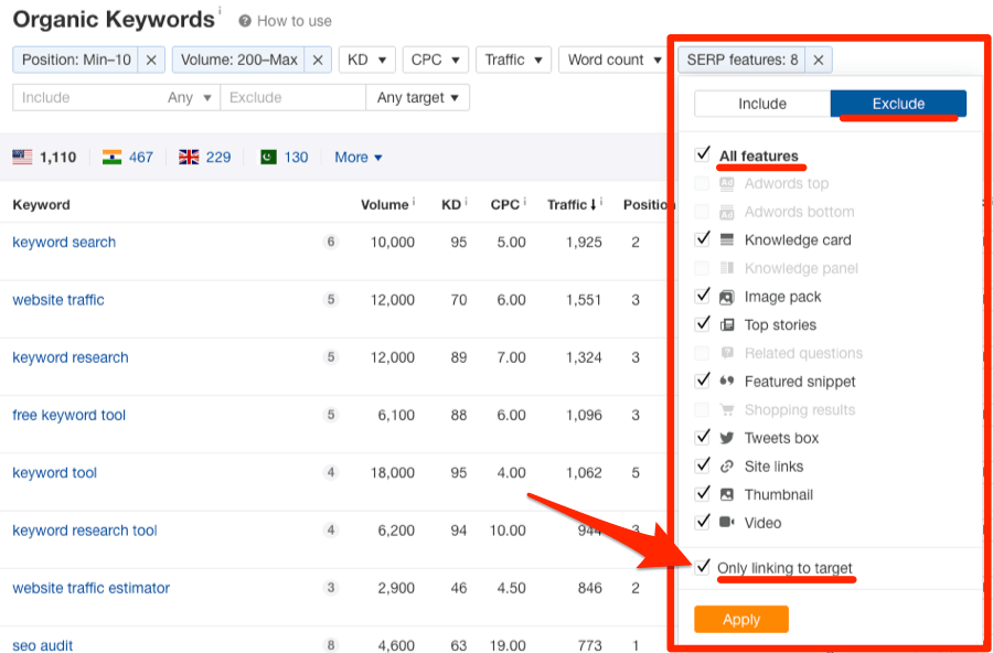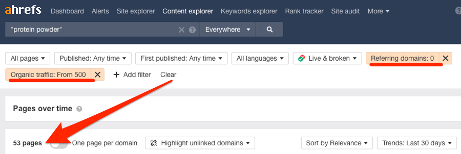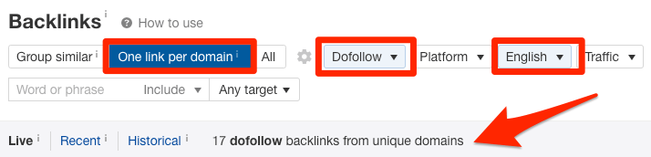 …但是因为我们只对建立高质量的链接感兴趣,所以我将添加一些过滤器来缩小潜在客户的范围: