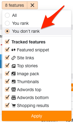 最后,我们需要排除掉所有我们自己设置的SERP 特性 (SERP Features)。