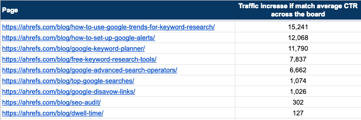 假如我们能够以某种方式改善点击率以达到平均值,数学上看起来是这样的: