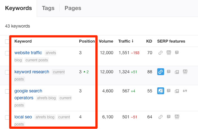 以下是我在Ahrefs博客上跟踪的目标关键词: