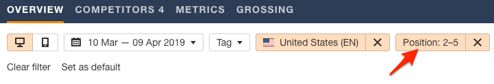 接下来,过滤出排名在2–5位的关键词。