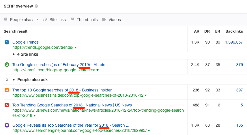 注意:查看排名靠前页面的网址评分是衡量机会的有用指标。 但也不是绝对确定的。为什么排名比你网页高的原因有很多例如更好的网页SEO等。