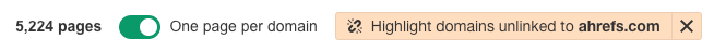 注意. 使用“高亮未链接的域名”(“highlight unlinked domains”)过滤器是从域名级执行的。这意味着只有整个网站没有链接到你时,未链接的提及页面才会被高亮展示。因此,如果有网站之前已经从其他页面链接到你网站。即便有网页存在未链接但提及到你品牌的情况,此网页也不会被高亮展示。