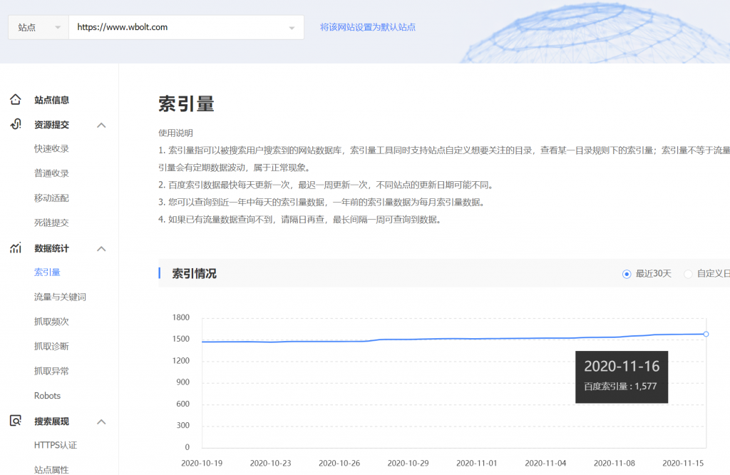 如果要查询网站在百度搜索的整体收录情况,也可以通过百度搜索资源平台查看。