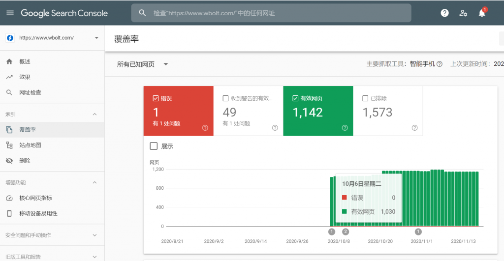 如果你是Google Search Console的用户的话,你只需要查看覆盖率额报告就可以找到精准的索引数据。你只需要进入: