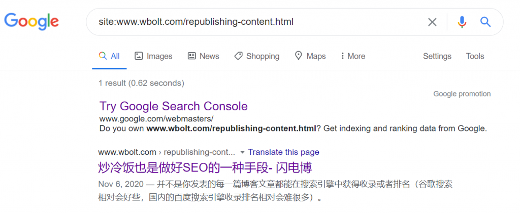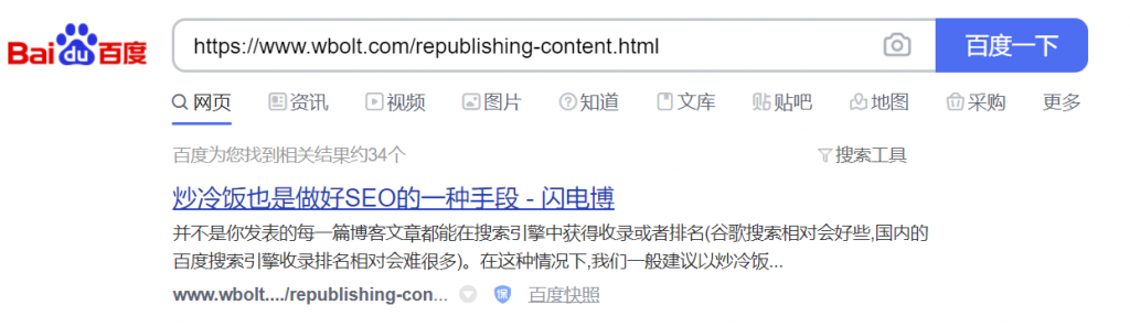 如果你想检查某个具体的页面是否被索引的话,同样也可以进行这样的操作site:详细的网址(此方法仅适合谷歌,百度则直接搜索URL地址),或者使用搜索推送收录插件的收录查询功能(仅支持百度收录查询) 。