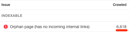 这会显示出所有可索引、在站点地图中显示的、但没有内部指向链接的所有页面。