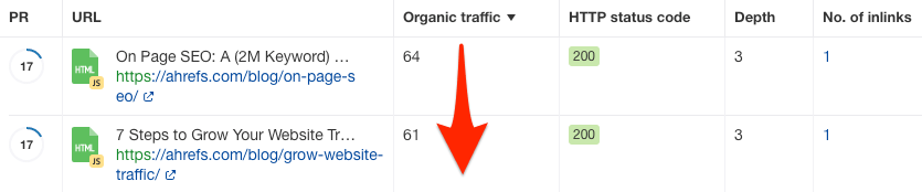 这里有另外一个窍门,就是可以将这些页面按照自然搜索流量大小做降序排列。