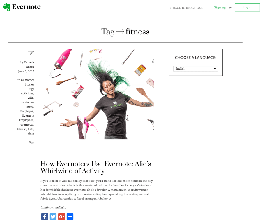 它列出了 Evernote 博客上所有带有 “fitness” 标签的文章——而这里只有一篇。